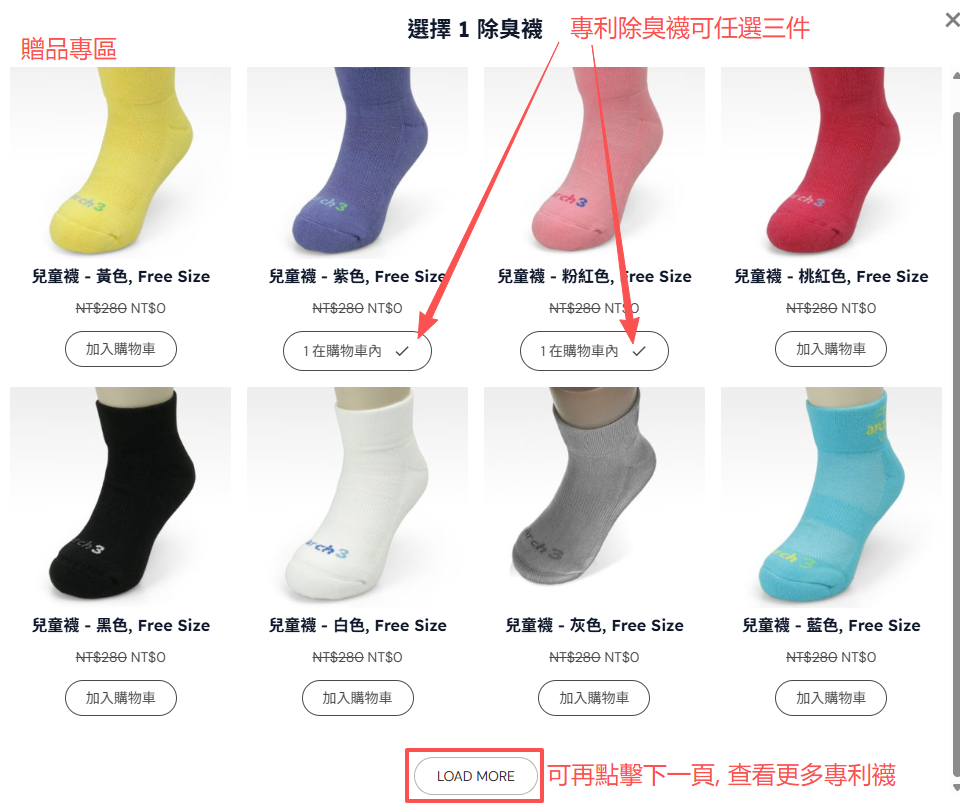 第四步:進入贈品區選擇喜歡的襪款